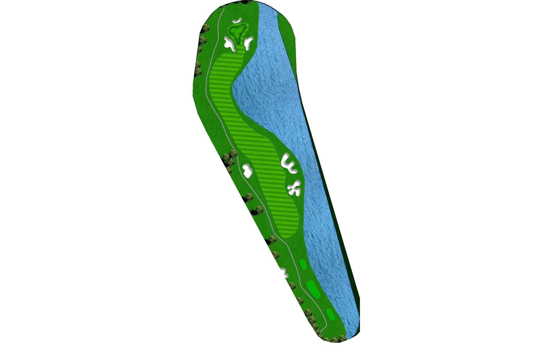 Long Par 5 with fairway bunkers aplenty down the left side of the hole.
